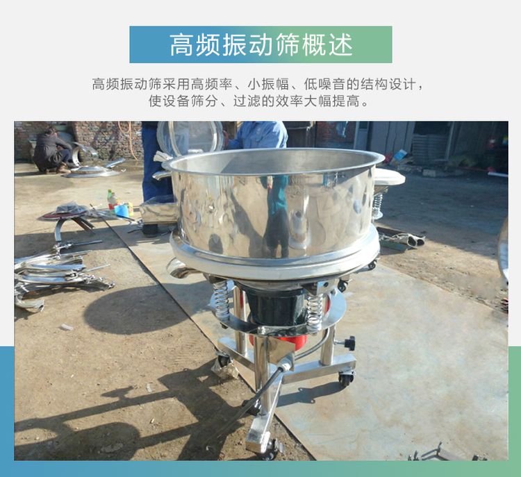 高頻篩也叫高頻振動篩,采用高頻率、小振幅、低噪音的結(jié)構(gòu)設(shè)計,使細粒物料在篩面上高速振蕩,破壞了漿液的表面張力,增加了物料與篩孔接觸的頻率,使設(shè)備篩分、過濾的效率大幅提高,廣泛應(yīng)用于食品、醫(yī)藥、化工、磨料、陶瓷、礦業(yè)、顏料、冶金、地質(zhì)、國防、電子等行業(yè)的漿料、粉料、顆粒生產(chǎn)的分級、過濾。方便的活動車架在工作場所可以隨意移動,不用進行復(fù)雜的設(shè)備安裝,高低可調(diào)、操作簡單、經(jīng)久耐用。