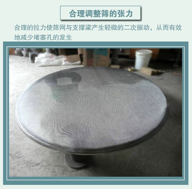 合理調整篩網拉力是減少篩網堵塞的有效方法。合理的拉力使篩網與支撐梁產生輕微的二次振動,從而有效地減少堵塞孔的發生。具體方法是使張力鉤成為恒力張力機構,即在張力螺栓上安裝彈簧。