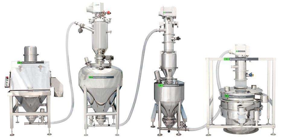 當小袋物料需要解袋并倒入下一道工序時,只需人工直接拆包后投入到該系統(tǒng),投料時所產(chǎn)生的物料粉塵由集塵風機進行收集。物料通過安全篩網(wǎng)可將大塊物料和異物攔截,從而保證符合要求的顆粒排出。該系統(tǒng)適用于制藥、化工、食品行業(yè)中小袋物的投放、篩分和卸料,特別適用于針對流動性較差物料的投料和篩分,拆包時由于集塵風機的作用,可以避免物料粉塵到處飛揚。