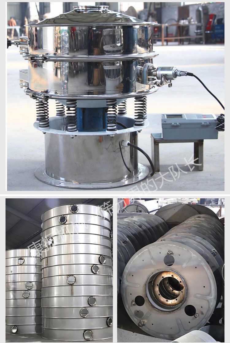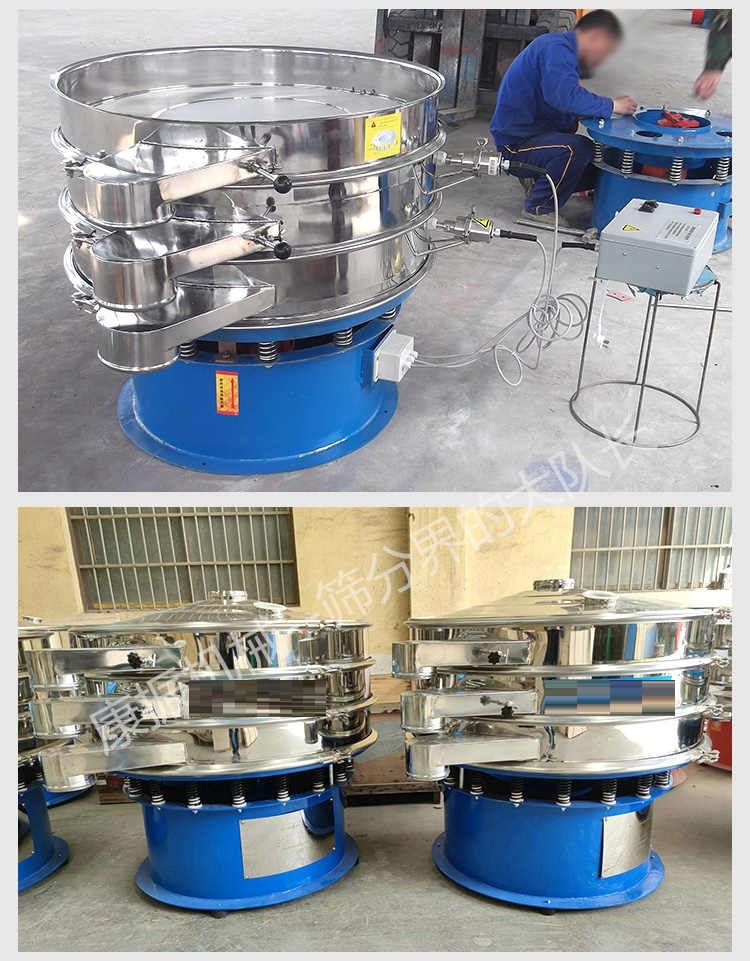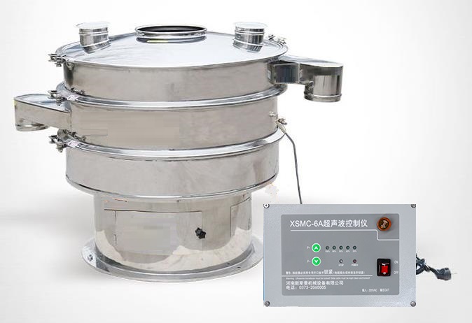超聲波振動篩是在旋振篩的基礎上引入了超聲波清網裝置,通過將220V、50Hz或110V、60Hz電能轉化為18KHz的高頻電能,輸入超聲換能器,將其變成18KHz機械振動,從而達到高篩分和迅速清網的目的,使超微細粉篩分成為易事。該系統在傳統的振動篩基礎上在篩網上引入一個低振幅、高頻率的超聲振動波(機械波),以改善超微細粉體的篩分性能。特別適合高附加值精細粉體的用戶使用。超聲波篩分系統是一種簡單實用、可靠的篩分系統,是當前網孔堵塞的有效的解決方法。可廣泛應用于制藥、冶金、化工、選礦、食品等要求精細篩分過濾的行業,篩分過濾精度高,有效解決因團聚、靜電、強吸附性卡堵網孔等篩分難題,是國內篩分行業的一項重大技術突破。