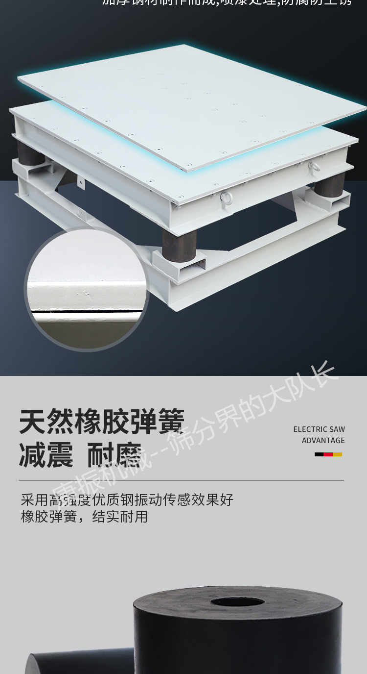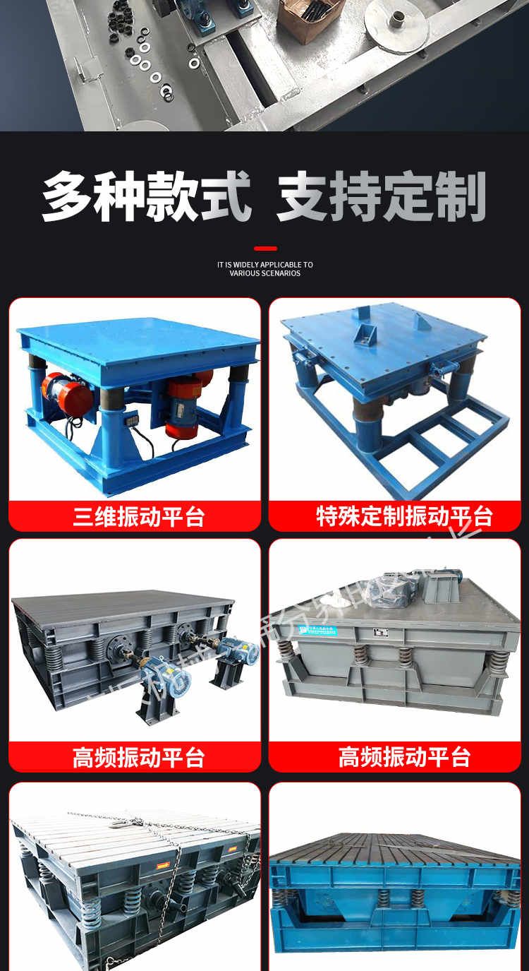 ◆大功率、大臺(tái)面;功率可大7.5kw,激振力80KN,可承載10T。