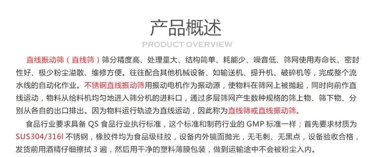 (2)和其他產品相比,直線篩擁有著篩選面積較大、處理能力效益較高且穩定的優勢特點。