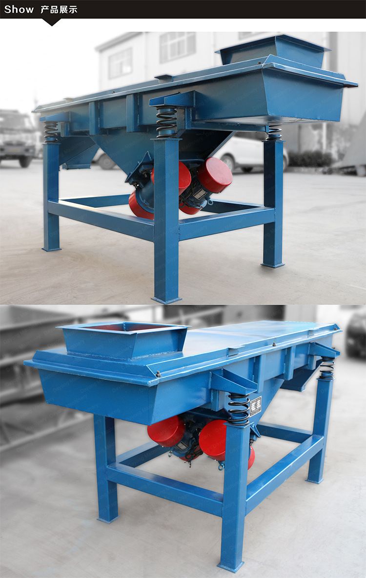 對粉狀、顆粒狀物料的篩選和分級,廣泛應用于塑料、磨料、化工、醫藥、建材、糧食、炭素、化肥等行業.直線振動篩(直線篩)系有效新型的篩分設備,廣泛用于礦山、煤炭、冶煉、建材、耐火材料、輕工、化工等行業。