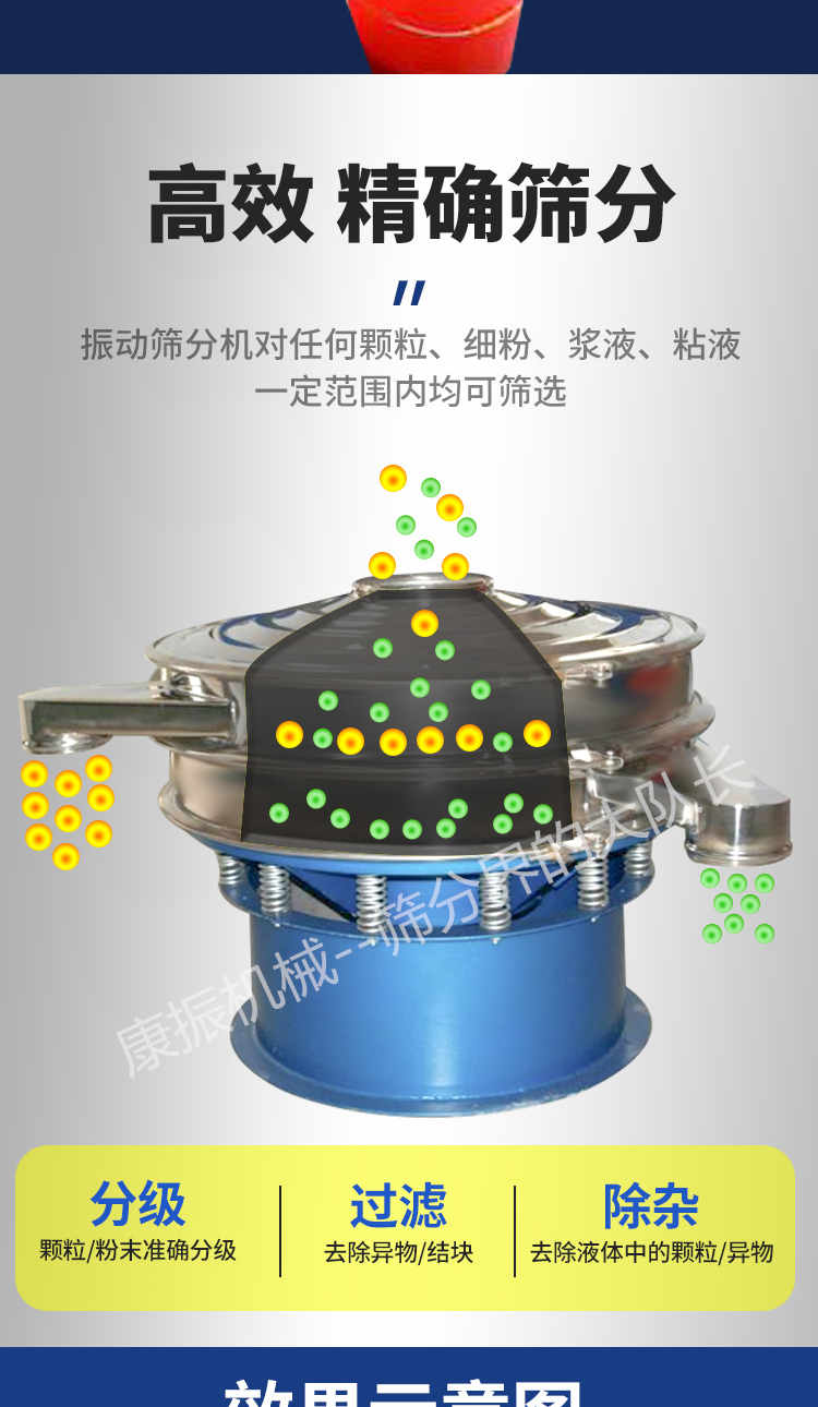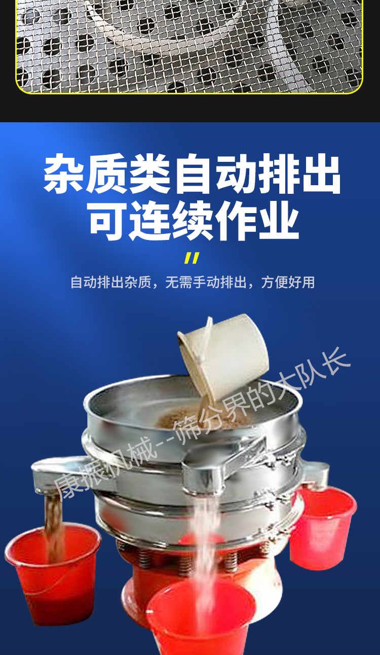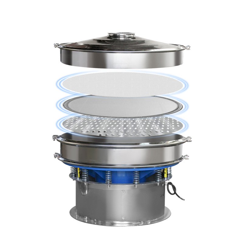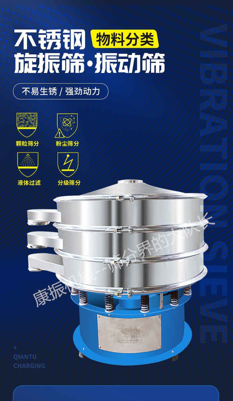 2、去液體:本設備單層、多層使用,可十分有效地處理固體、液體的混合物料。快速實現固液分離,并篩選過濾出不同的目的物料。